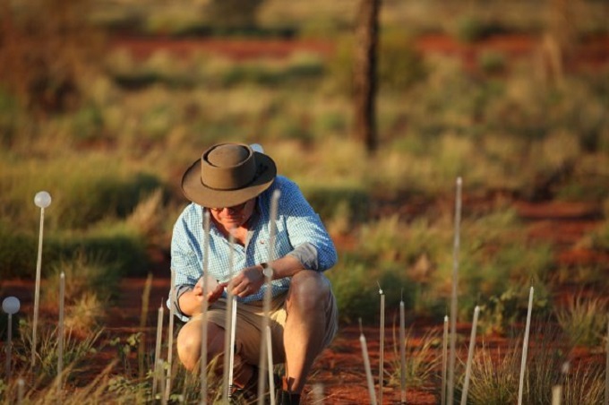 ![]() “There is something special about seeing the stems in this powerful, raw landscape” says Munro. “ I hope the installation helps visitors experience the infinite nature of this land. I like the idea of something so temporary set against the desert and the ancient rock. And also the] thought that we can be inspired by something much bigger than ourselves - that is this place. Hopefully this huge, huge red rock will inspire other people as it inspired me".