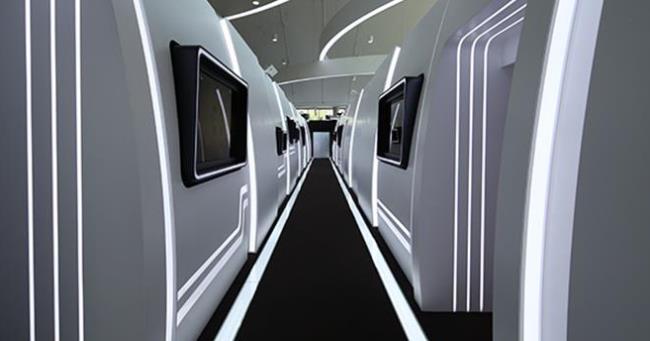 There will be nine First class Apartments each 3.6 sq mts ( 39 sq ft). Apartments arranged either side of a central aisle to give more space back to the passenger. They are decked out with a separate reclining lounge seat and full-length bed ((2.04 metres) as well as a chilled mini-bar, personal vanity unit, wardrobe and a sliding door. For those travelling together for business or pleasure six will have interconnecting doors. There is also a shower and changing room for first-class Apartment guests. A lounge area will be positioned between the first- and business-class and will be shared by both cabins.