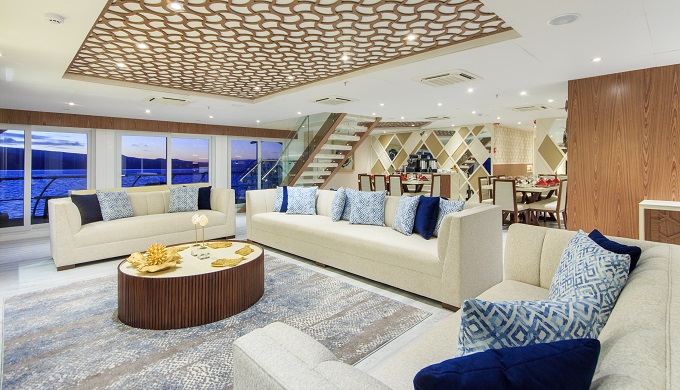 One of the most impressive features of the bespoke, stylish interiors is the large lounge with its floor to ceiling glass windows to watch the stunning scenery go by (in case of a change in the weather!). The Elite joins Golden Galapagos Cruises’ other catamaran The Endemic which at 115ft set a new standard for luxury catamarans in the Galapagos Islands when it launched in July 2018. The Endemic was the first in the Galapagos Islands to feature panoramic ocean view suites with floor-to-ceiling glass sliding doors for a more immersive experience of this stunning part of the world.