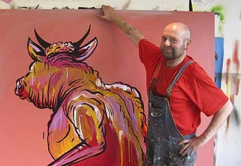 Could you live for long with Cullen's art? He is, after all, a man who first attracted attention while still at art school by chaining a rotting pig's head to his leg and dragging it around until it fell apart. His early work involved dead cats, and decay and disfigurement still dominate his painted comments on Australian society. He's courted controversy throughout his career and even his 2000 Archibald Prize winning portrait of David Wenham offended some critics, who deemed it 'crude' and 'cartoonish.' Most, however, revel in Cullen's punk sensibilities, the pathos and humour in his work and his flair with colour.