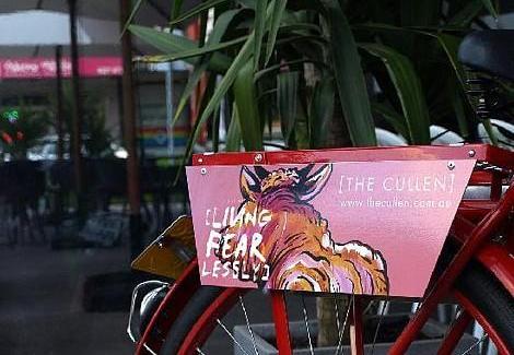 The Cullen, opened in late 2009, is the ballsy older sister to the gentle Olsen and whimsical Blackman hotels. It's also the smallest. The intimacy suits the art's intensity and staff members convey an unaffected, genuine friendliness which softens your sudden encounters with a stiletto-wearing Ned Kelly or a slogan-daubed fibreglass cow. Their warmth accentuates the humour in Cullen's art. It dilutes the shock value, dissipates the unease.