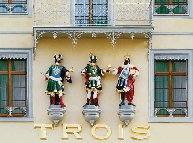 The name Les Trois Rois is a reference to the ‘Three Wise Men’ from the Orient, Caspar, Melchior and Balthasar, also known as The Three Kings. However legend suggests the hotel may have been named after three kings who met at the establishment in 1026 to discuss the future of the Kingdom of Burgundy.