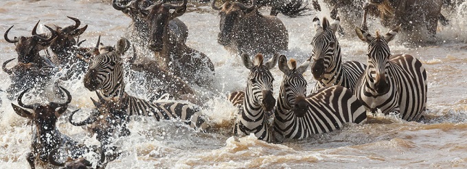 How is the weather during the Migration? “We had the long rains this year from March to June, and now we are in what we call the ‘Kenyan winter’ – which basically means fresh and chilly mornings and evenings. It’s also quite cloudy, and showers aren’t uncommon. On the plus side, that means there is lots of food for wildebeest and zebra, which is why they are here in such huge numbers right now. However, it’s an El Niño year and this has meant the weather has been fairly unpredictable, and the long rains came in quite late.” When is the best time of day to photograph the Migration? “From long experience, I think the best time is either in the morning before 9am or in the afternoon after about 4pm. We usually go to the first crossing point quite early and, if it’s quiet, we’ll move on to the next one until we find one with the most activity. Of course it’s certainly possible to take good photographs in the middle of the day, but you need to be more of an expert photographer to get the best shots. If you are an amateur photographer like most of us, the light is much better in the morning and evenings – meaning better photos, which is what we all want.” When is the Migration in the Masai Mara? “This year, we first saw the Migration in the Masai Mara on 14 June, which is when we started to see wildebeest crossing the border from Tanzania and the Serengeti National Park. The crossing point into Kenya is about a half-day from Sanctuary Olonana Camp. Normally the wildebeest head back in late October, but can sometimes stay here until November or even December depending on how strong the season is.” What do guests like best about the Migration? “One of the most popular activities with Sanctuary Olonana guests is a bush dinner held on site close to one of the river crossings. There is something quite surreal about indulging in some gourmet fine dining against a background of wildebeest gurgling and grunting nearby. Guests also enjoy picnicking close to a crossing where they can relax and sit back and enjoy the what are quite literally, front row seat to the Great Migration. And of course, a traditional ‘sundowner’ or two at about 6:30pm is everyone’s favourite time on safari, especially during the Migration!”