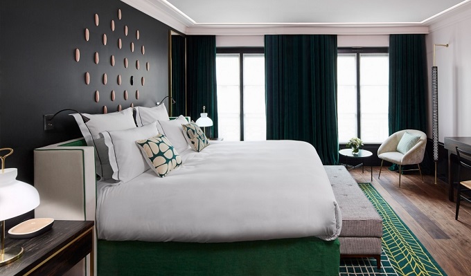 Opening: June 2016 WE’VE all been making a big fuss about the re-opening of Hotel Ritz Paris meanwhile a stylish a bijoux newcomer is also about to launch in la belle Paris. Le Roch Hotel & Spa opens on June 30. Already a member of the discerning Design Hotels collection the hotel will have just 37 rooms. All of which are created by Sarah Lavoine one of the city’s favourite design darling, previously known for the restaurant Le Victoria 1836 and the Place Saint Sulpice flagship store of the Comptoir des Cotonniers. This is her first foray into hotels and her cool interiors style is showcased palette of sage, chartreuse, and green. Lavone says her inspiration for Le Roch was fuelled by both her love for her city and by and her passion for colour, travel, and objects d’art. She lives and breathes the area where the hotel is situated in fact the designer has her family home, her boutique and her offices in the Saint-Honoré district, so the hotel has a real spirit of place.
